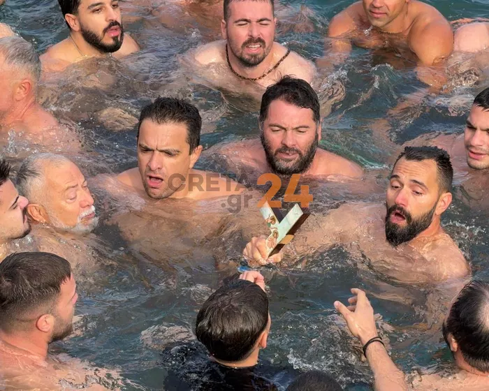 Ο Αρχιεπίσκοπος Κρήτης Ευγένιος έψαλλε «Ἐν Ἰορδάνῃ βαπτιζομένου σου Κύριε», πέταξε τον Σταυρό στη θάλασσα και οι… τολμηροί κολυμβητές βούτηξαν στο κρύο νερό του λιμένα Ηρακλείου για να πιάσουν και να προσκυνήσουν τον Τίμιο Σταυρό.