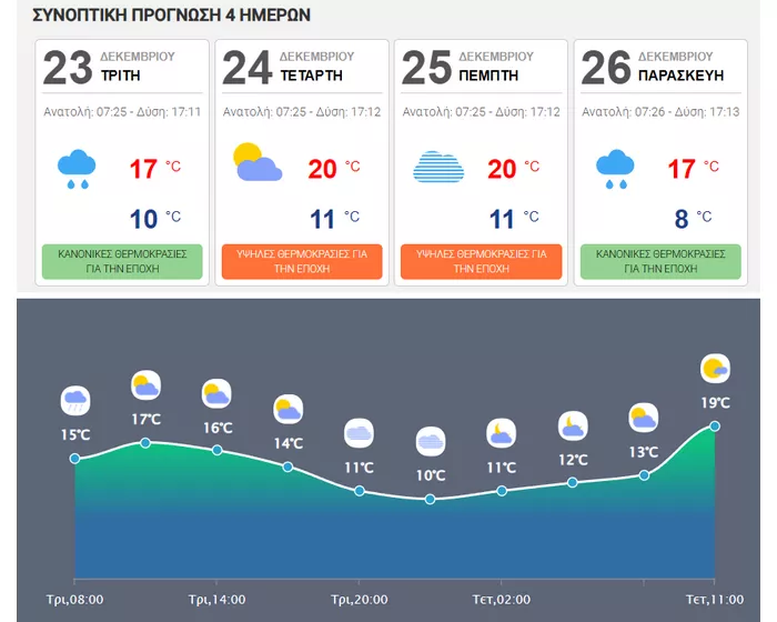 Η πρόγνωση του καιρού την Τρίτη 23 Δεκεμβρίου.