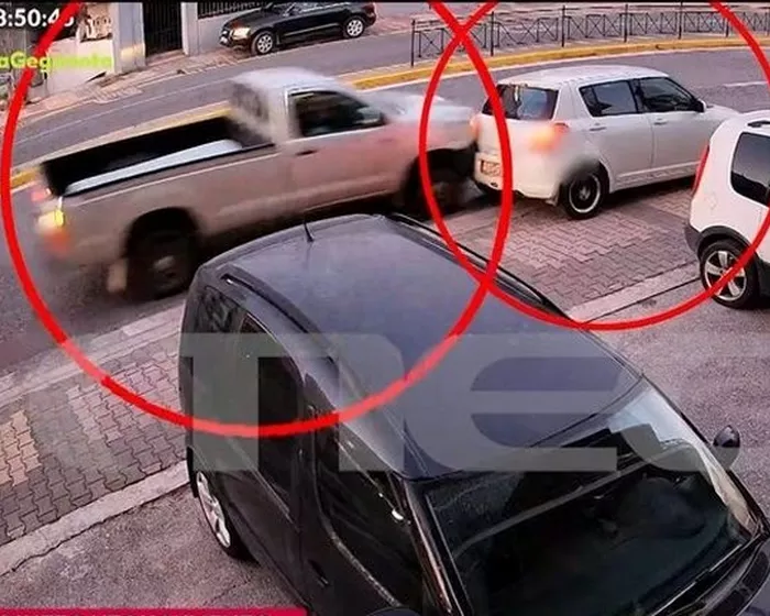Λίγα δευτερόλεπτα αργότερα, το αγροτικό που ακολουθεί με υπερβολική ταχύτητα, καρφώνεται στο πίσω μέρος του προπορευόμενου οχήματος χωρίς καν να ελαττώσει ταχύτητα ή να πατήσει φρένο. Η σύγκρουση είναι τόσο σφοδρή, που τα δύο οχήματα σέρνονται για αρκετά μέτρα μέχρι να ακινητοποιηθούν πλήρως. Από θαύμα αποφεύχθηκαν τα χειρότερα, καθώς στο βίντεο διακρίνεται ένας πεζός που μόλις την τελευταία στιγμή προλαβαίνει να γλιτώσει από τα συγκρουόμενα οχήματα.