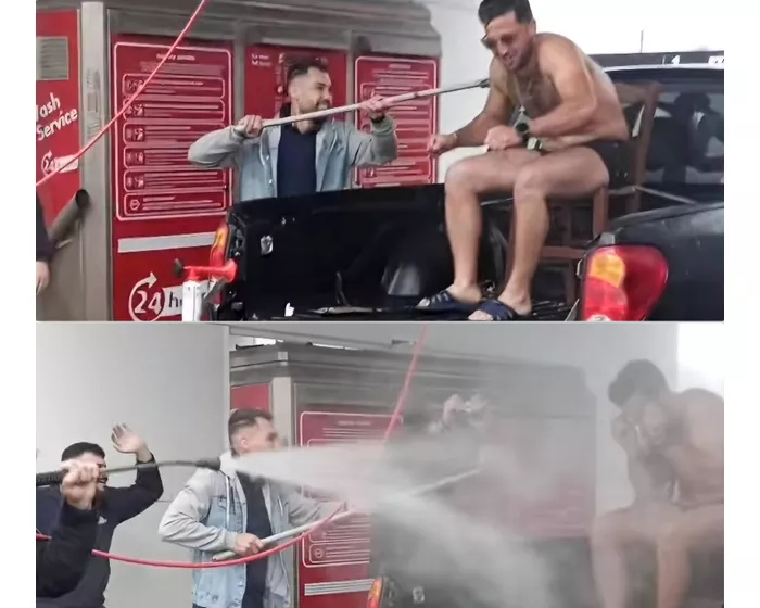 Ο γαμπρός Αντώνης -που παντρεύεται, απόψε, ανήμερα της ονομαστικής του εορτής, στο χωριό Λούρες Δήμου Γόρτυνας- “φορτώθηκε” στην καρότσα αγροτικού και οδηγήθηκε σε Πλυντήριο Αυτοκινήτων, όπου οι φίλοι του τού έκαναν “γενικό καθαρισμό”, πλένοντας τον με νερό υπό πίεση, με τη μάνικα, πριν φορέσει το γαμπριάτικο κουστούμι!