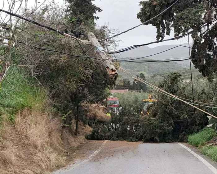 Η πτώση ενός μεγάλου δέντρου στον οικισμό των Κελλιών Ηρακλείου, στο Δήμο Αρχανών-Αστερουσίων, λόγω των θυελλωδών ανέμων που επικρατούν στην περιοχή, είχε ως συνέπεια την πρόκληση ζημιάς σε κολώνα της ΔΕΗ.