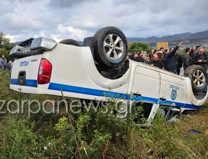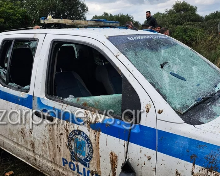 Οι αγρότες στα Χανιά βανδάλισαν και αναποδογύρισαν ένα περιπολικό, ενώ από τα επεισόδια έχουν τραυματιστεί δύο αστυνομικοί. Παράλληλα, ζημιές υπέστη και η κλούβα της αστυνομίας από τον πετροπόλεμο, η οποία απομακρύνθηκε. Οι πέτρες στο οδόστρωμα είναι αμέτρητες, όπως φαίνεται χαρακτηριστικά και από τις παρακάτω φωτογραφίες.
